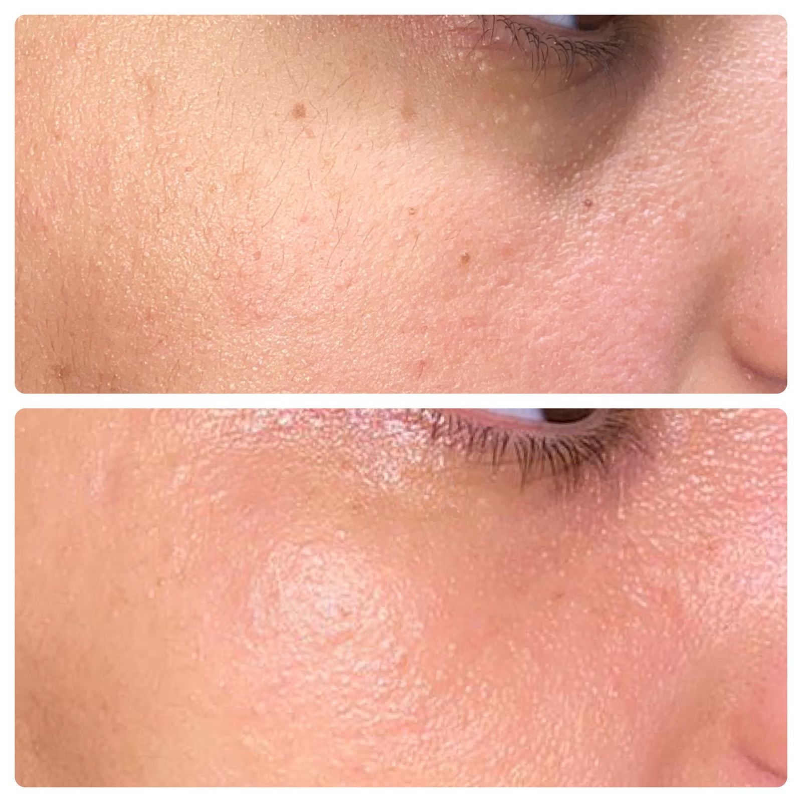 Poren wirken größer, nicht feiner.